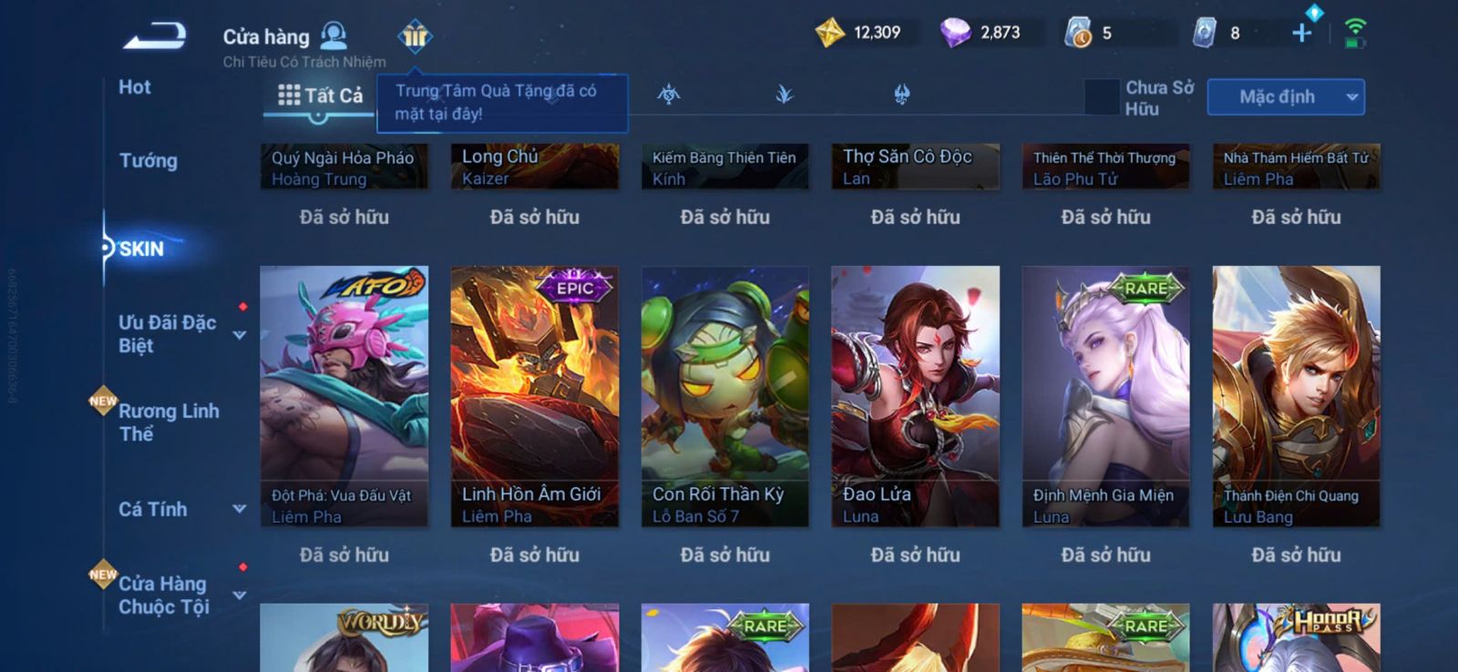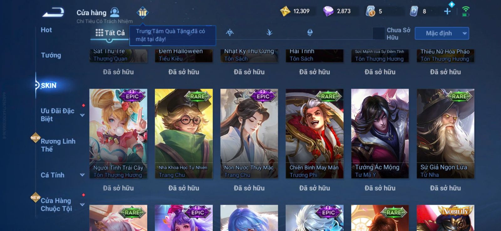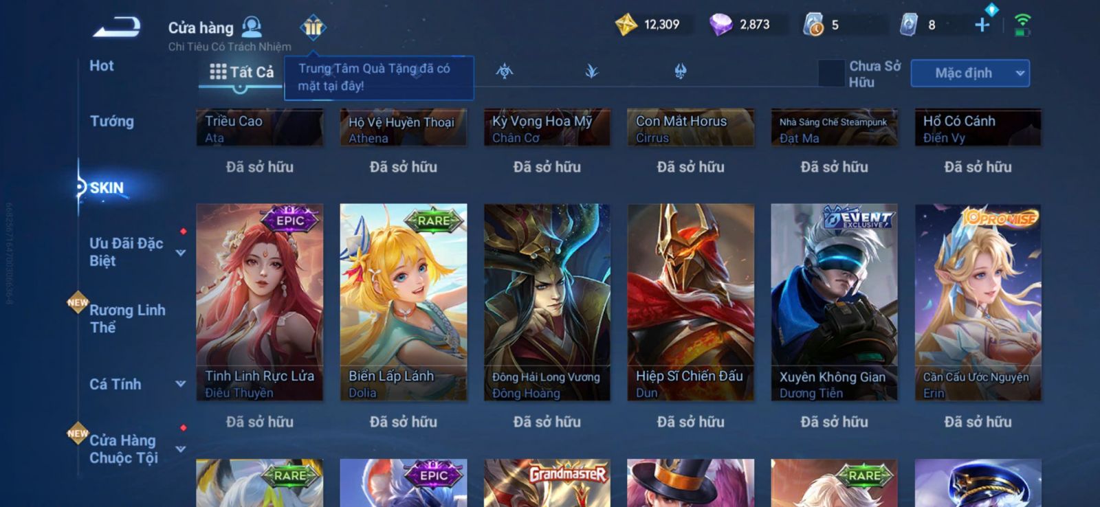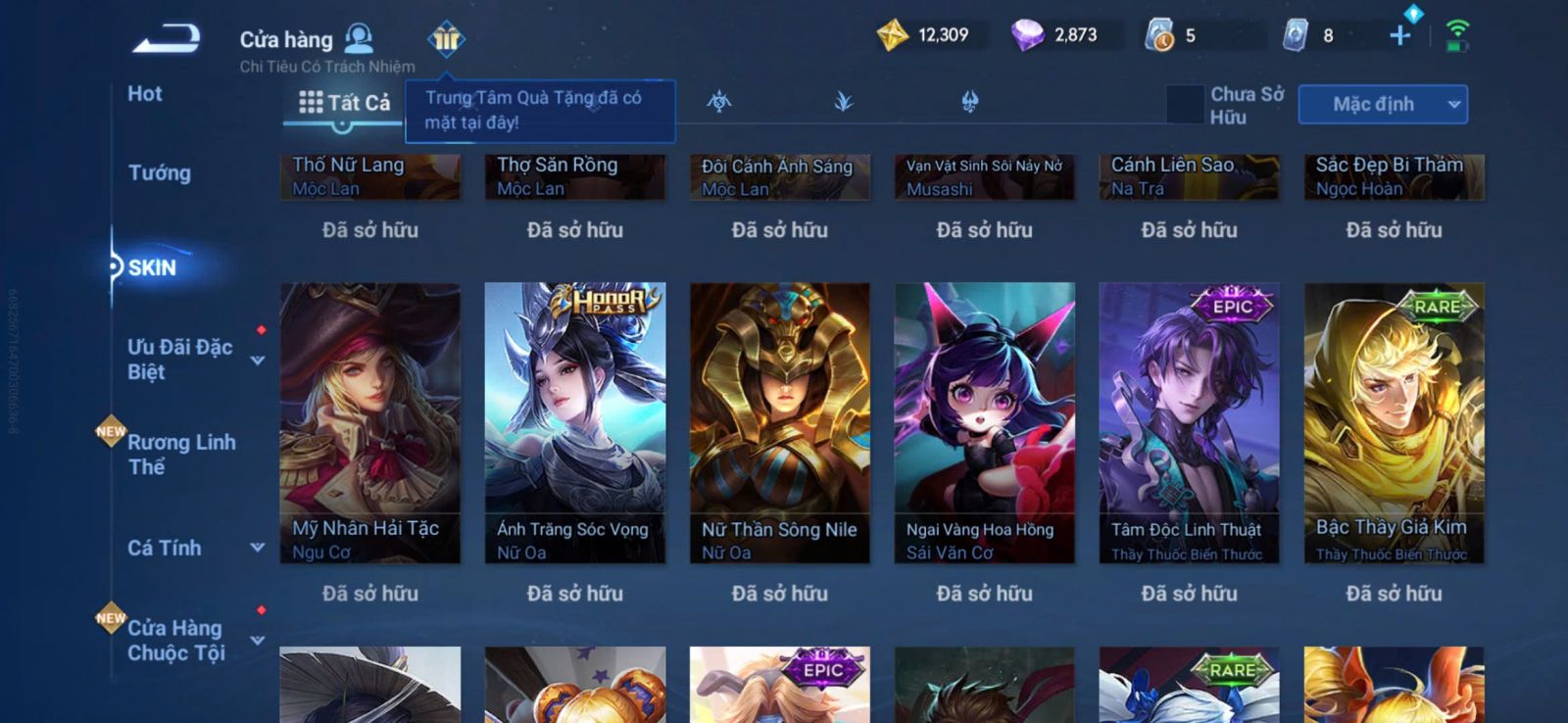 Nổi bật: VM401 - Mythic Mộc Lan, JJK Gojo, 2 Legend Allain, Angela, Promise Erin, 13 Epic