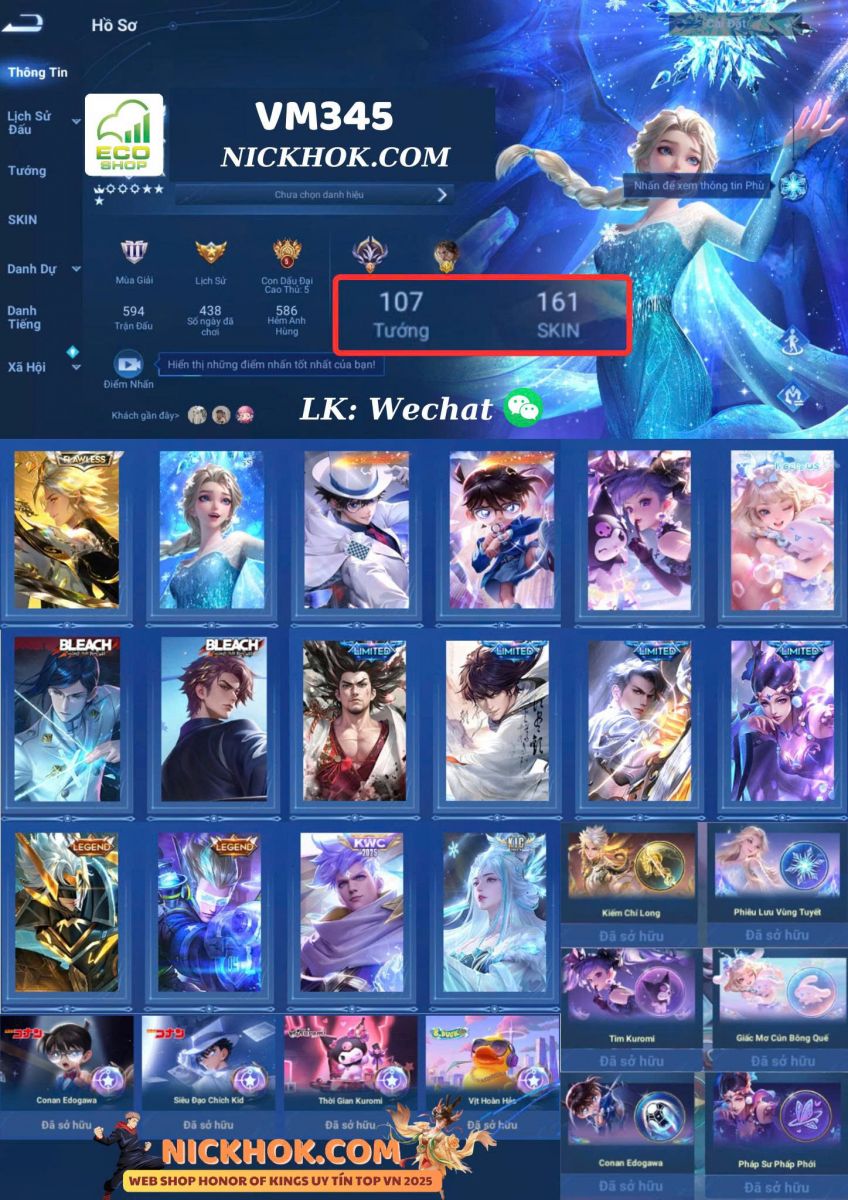 Nổi bật: VM345 - 2 Flawless Diệu, Elsa, 2 Coan Marco Polo, Lỗ Ban Số 7, Kuromi Angela, Yaria, 2 Bleach Hậu Nghệ, Bạch Khởi, 2 Legends Tôn Sách, Địch Nhân Kiệt, KIC Luna, 4 Limited Musashi, Lý Bạch, Kaizer, Điêu Thuyền