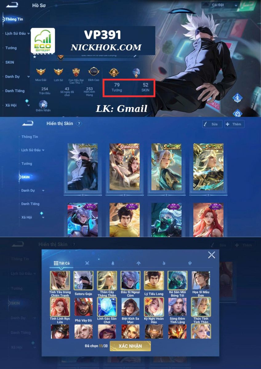 Nổi bật: VP391 - Gojo JJK, 2 Sanxingdui Nữ Oa, Hậu Nghê, 5 Epic
