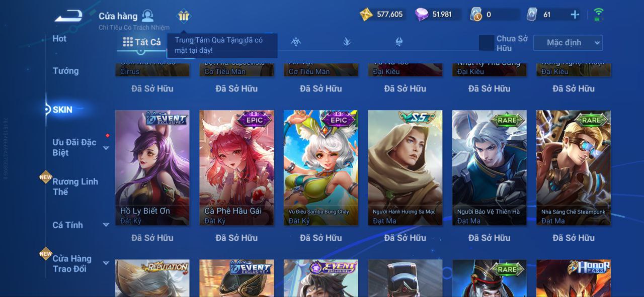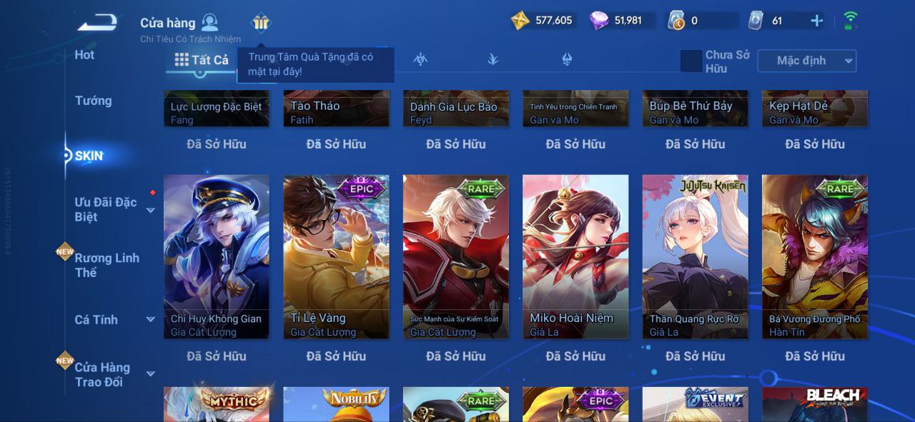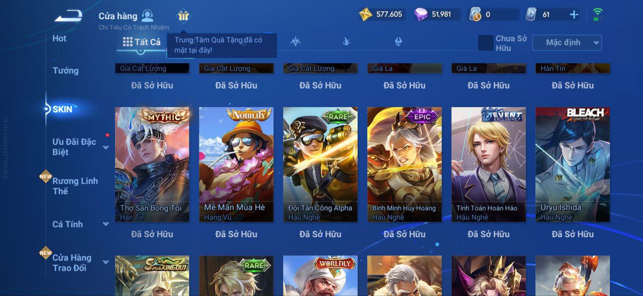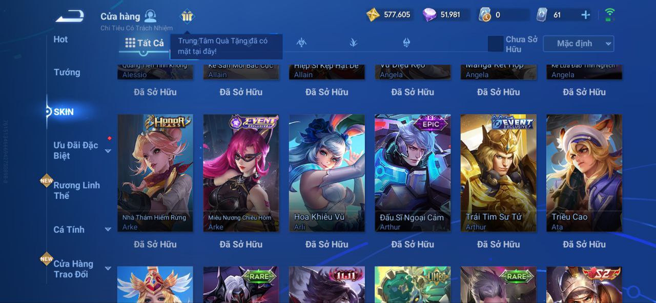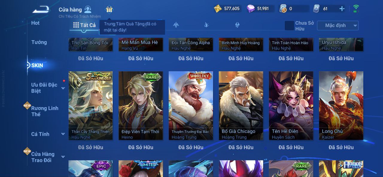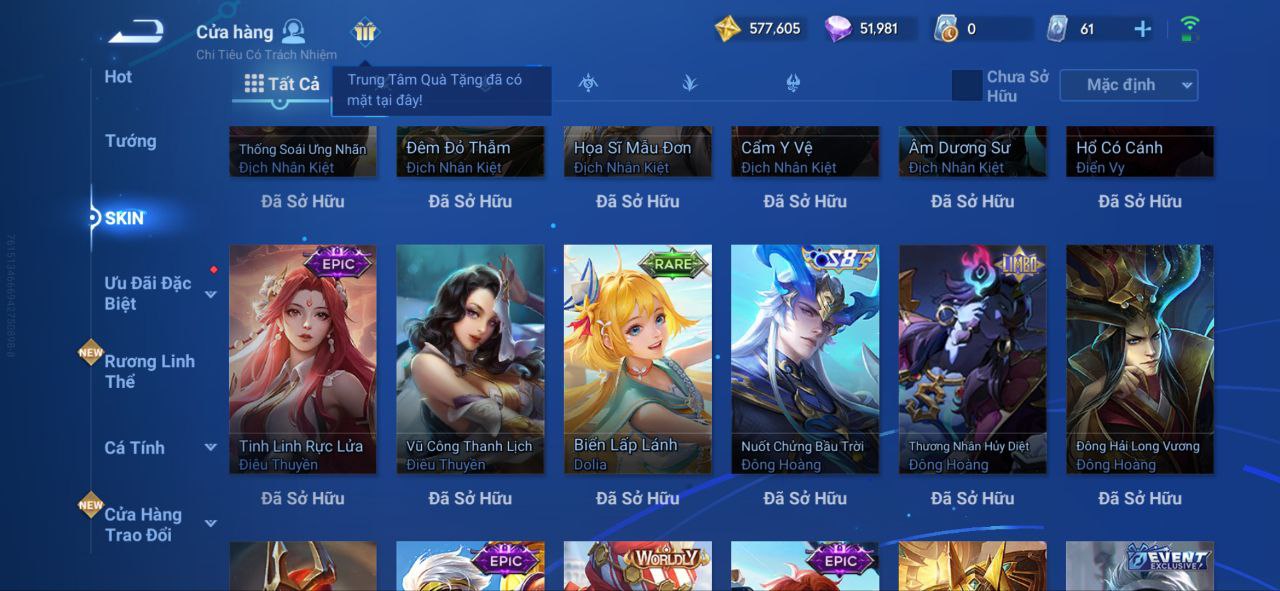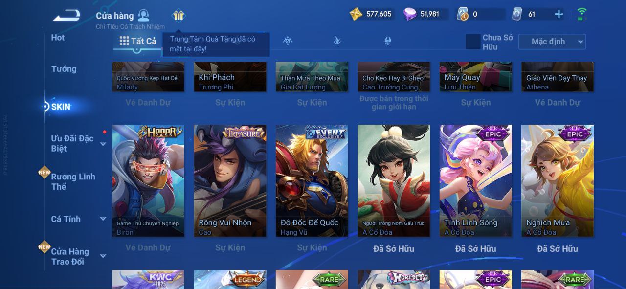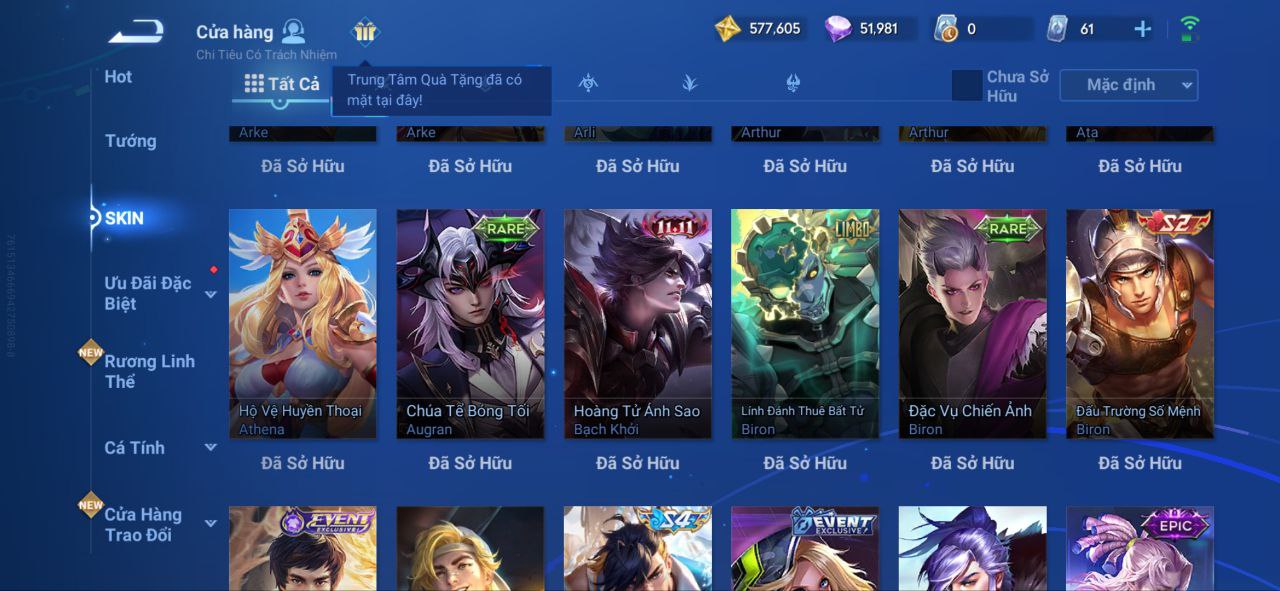 Nổi bật: VM462 - Mythic Hàn Tín, 2 Legend Lý Tín, Allain, 2 Tết 2025 Nữ Oa, Ngu Cơ, 2 Limbo Biron, Đông Hoàng, Stellar Musashi, 2 Sanxingdui Nữ Oa, Hậu Nghệ, 11.11 Bạch Khởi, LNY 2024 Đại Kiều, Flora Sakeer, Tây Du Kí Chân Cơ, Hello Kitty Tiểu Kiều, 2 Limted Kính, Ngọc Hoàn, 60 Epic
