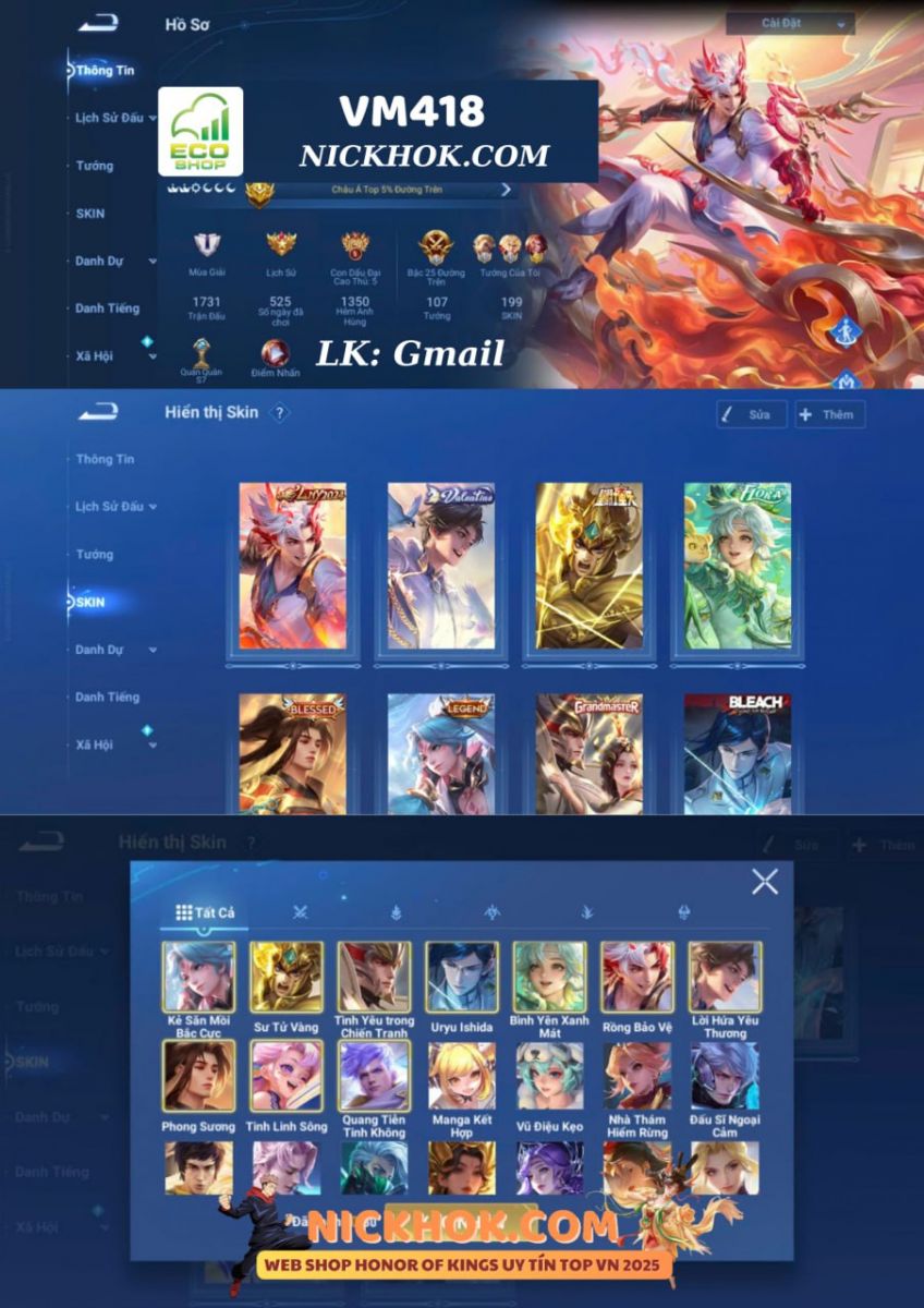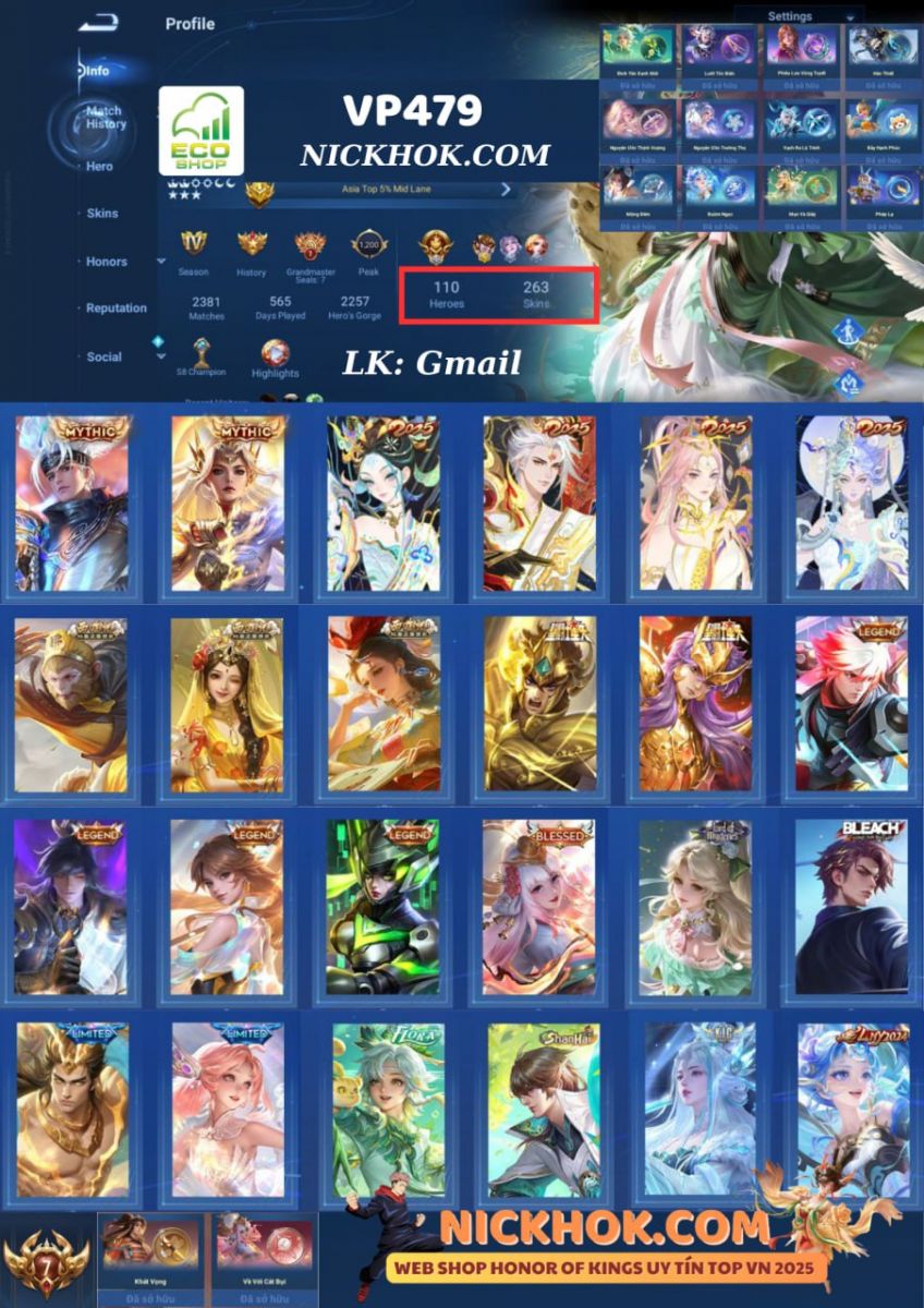 Nổi bật: VP479 - 2 Mythic Hàn Tín, Mộc Lan, Full Tết 2025, LNY 2024 Angela, Full Tây Du Kí, 3 Legend Lan, Lý Tín, Ying (Vân Anh), 2 Bleach Bạch Khởi, Hậu Nghệ, Blessed Nakoruru, 2 Shanhai Marco Polo, Yaria, Hello Kitty Tiểu Kiều, 5 Limited Lữ Bố, Dolia, Khải, Già La, Hải Nặc, Flora Sakeer, 53 Epic