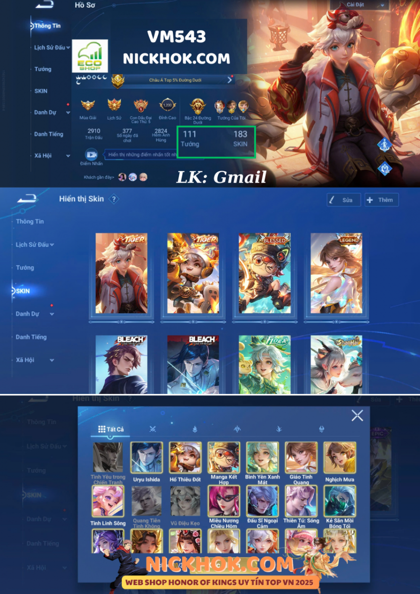Nổi bật: VM543 - 2 Tiger 2 Bleach Bạch Khởi, Hậu Nghệ, Blessed Lỗ Ban số 7, Flora Sakeer, Legend Ying, Hello Kitty Tiểu Kiều, 25 Epic