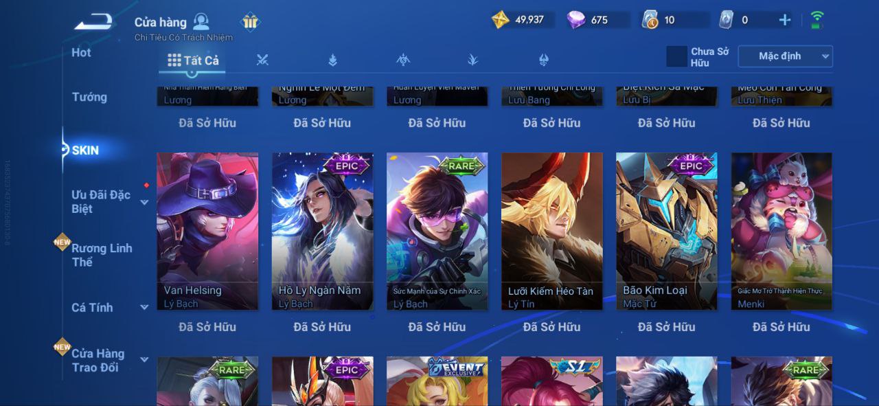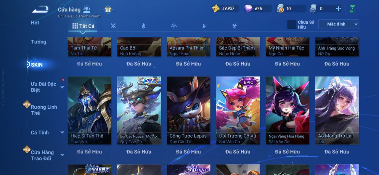 Nổi bật: VL545 - Flawless Hàn Tín, Magic Thượng Quan, LNY 2024 Đại Kiều, Limited Ngọc Hoàn, 11 Epic